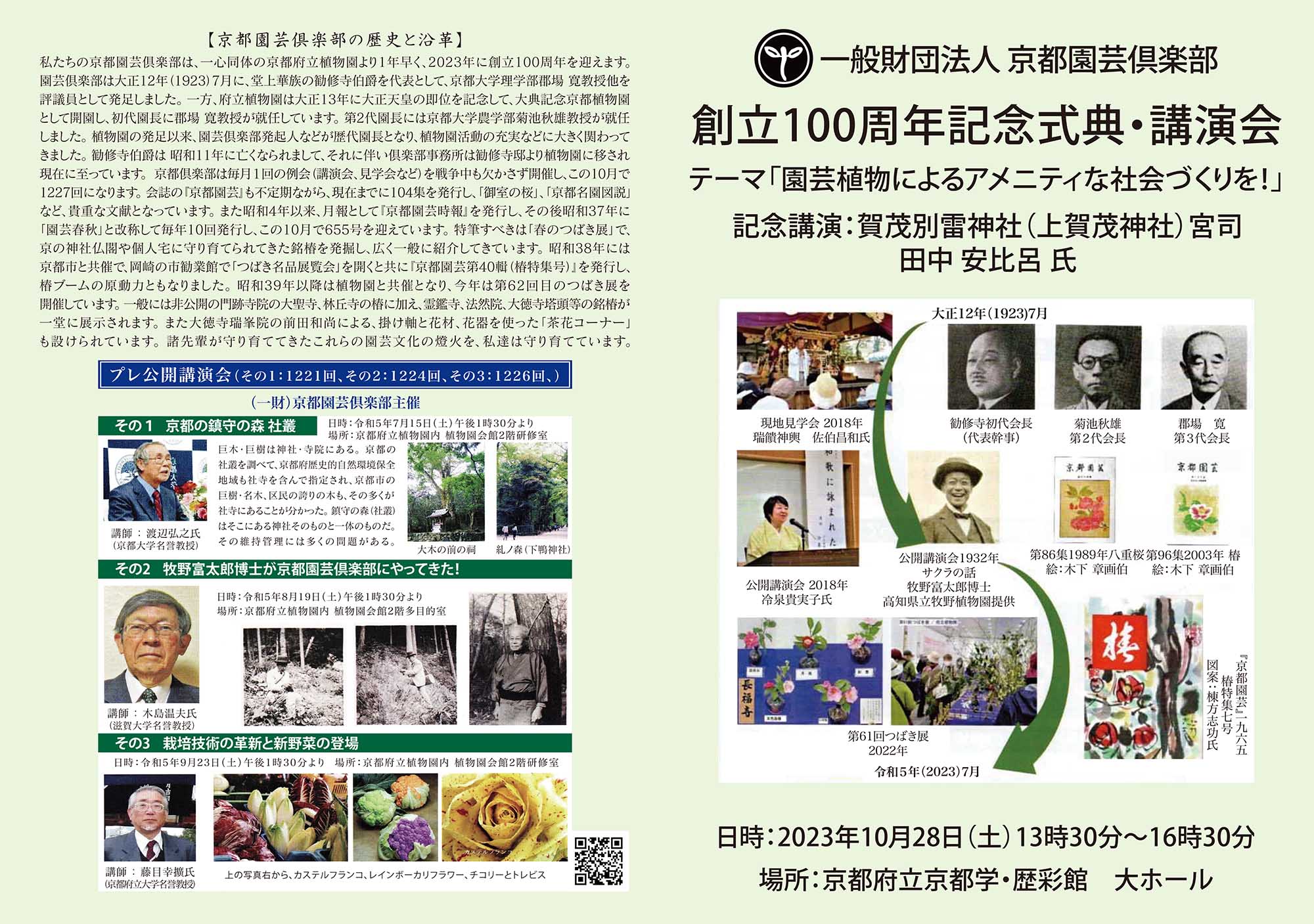 一社)京都園芸倶楽部創立100周年記念式典・講演会2023年10月28日/京都府立京都学・歴彩館大ホール